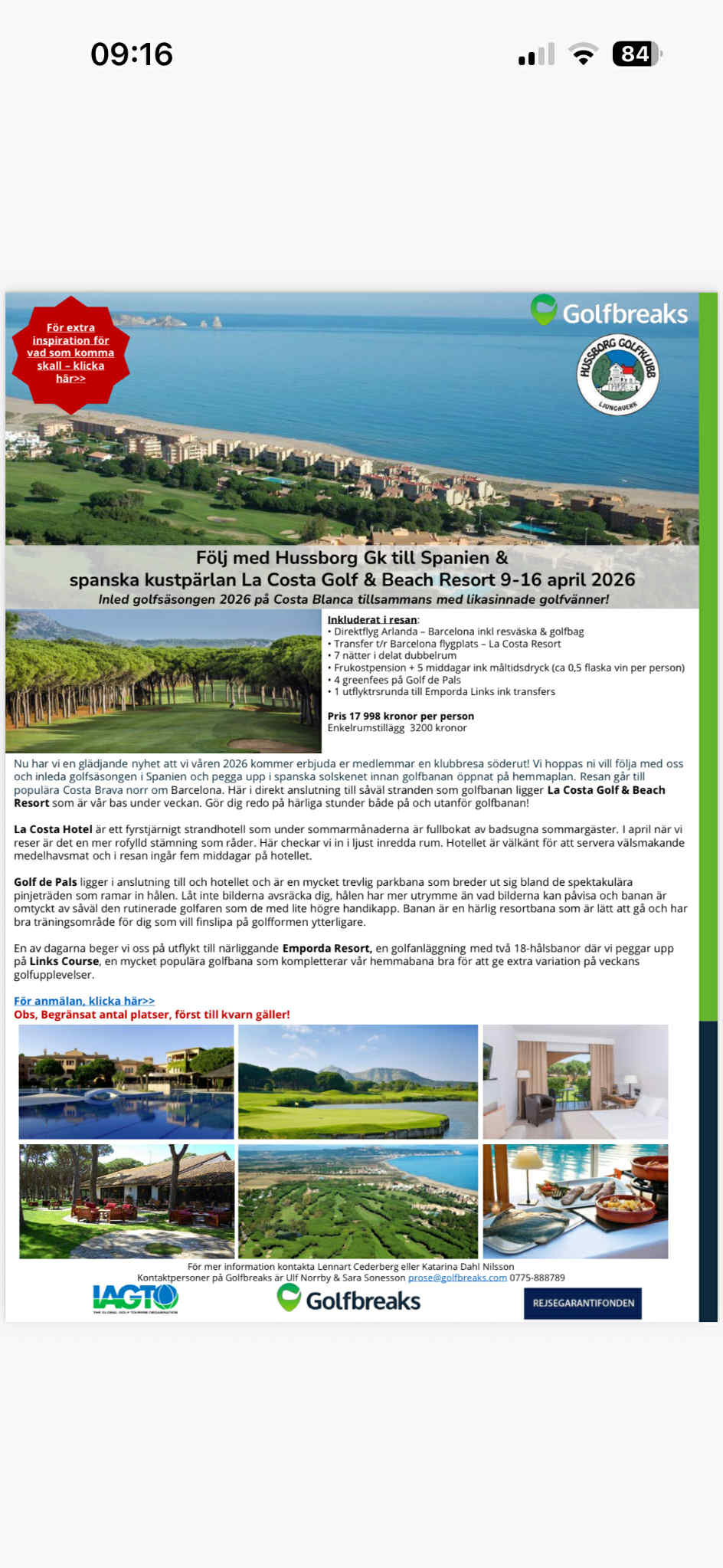 Hussborg Golfklubb så hör du av dig till mig på mail eller telefon.